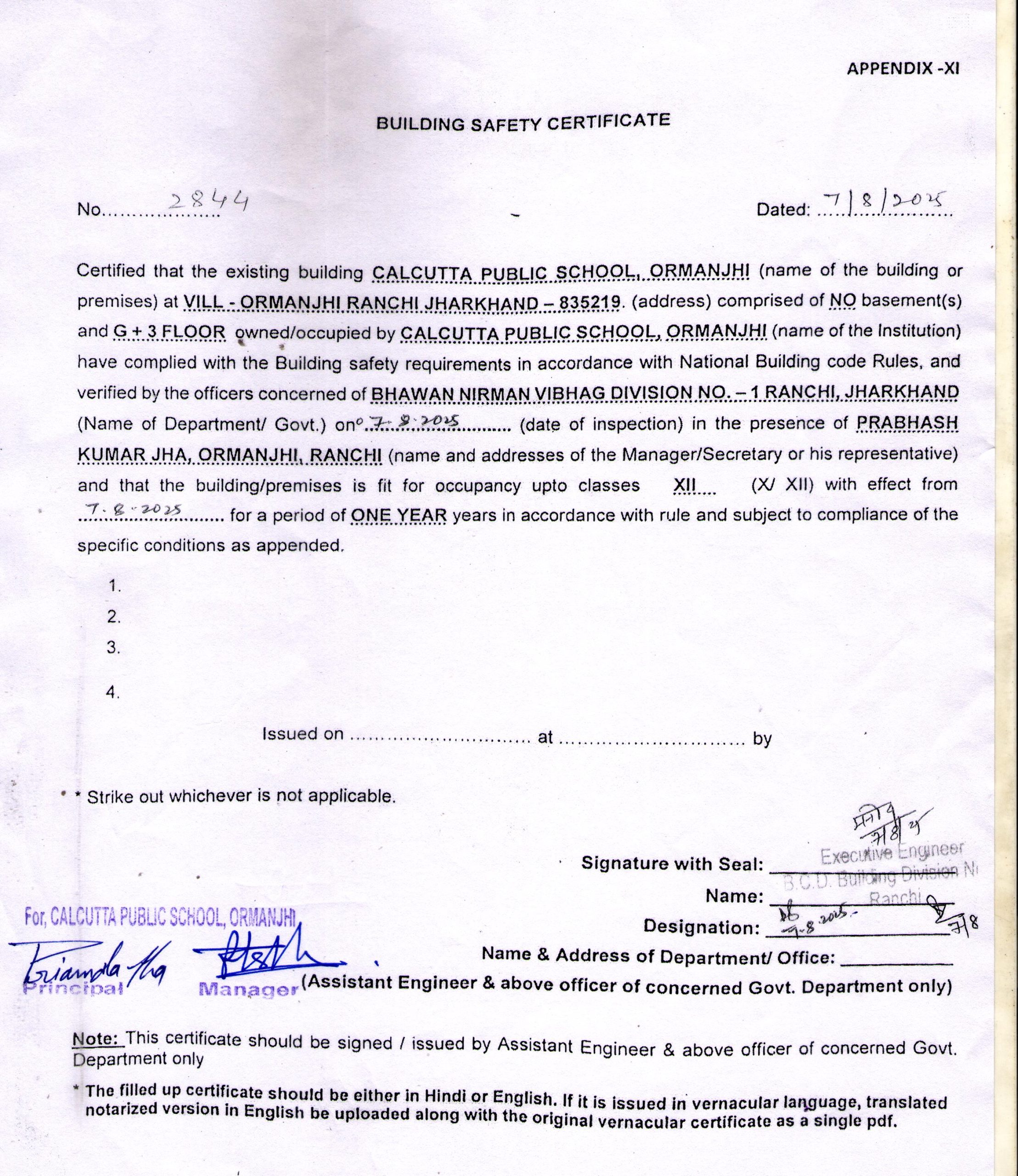 | 5 | Copy of Valid Building Safety Certificate as per the National Building Code | Building Safety Certificate / B S C |