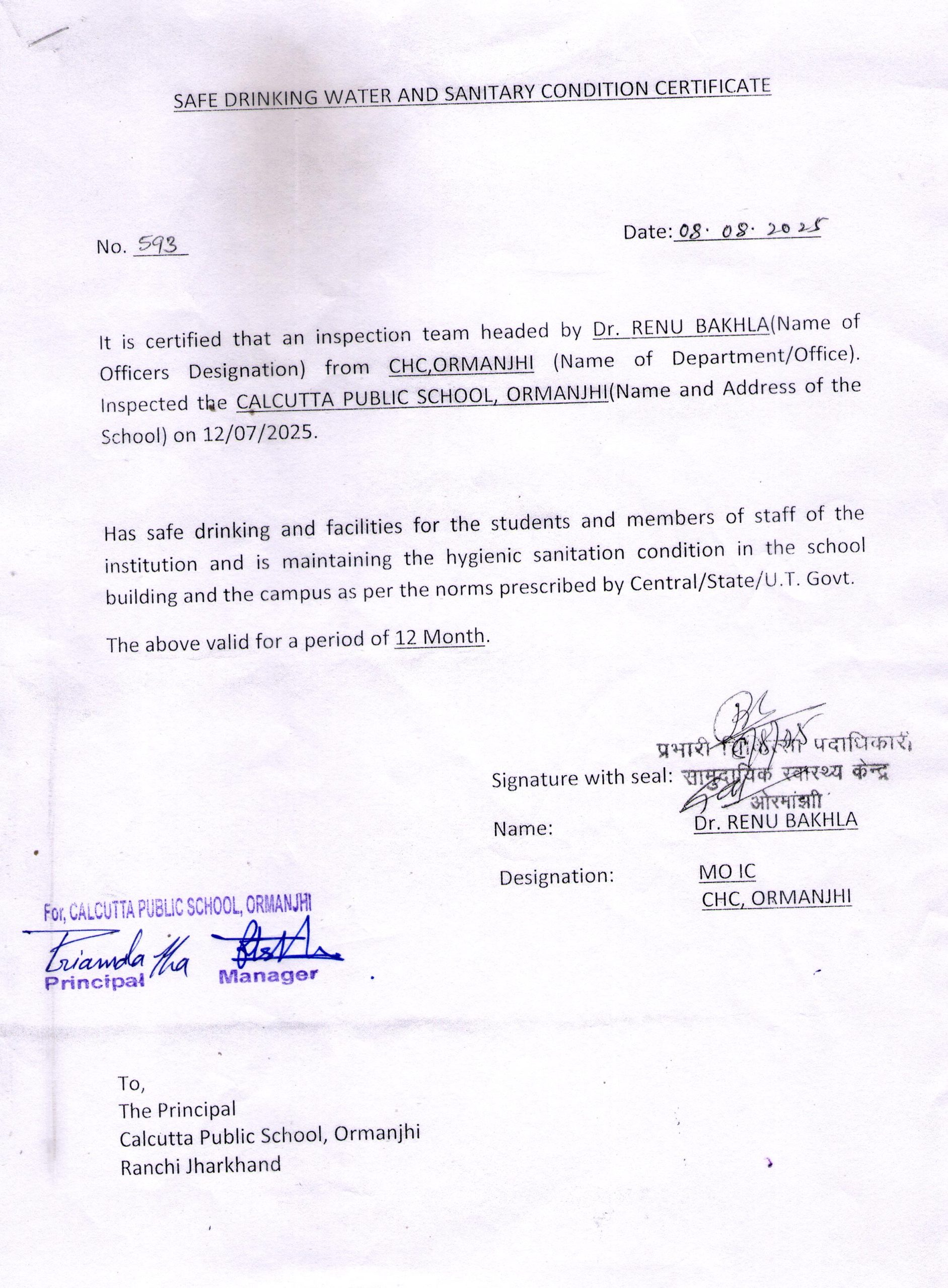 | 4 | Copies of Recognition Certificate under RTE Act. 2009. And its Renewal if Applicable | Recognition Letter from Jharkhand Govt. |